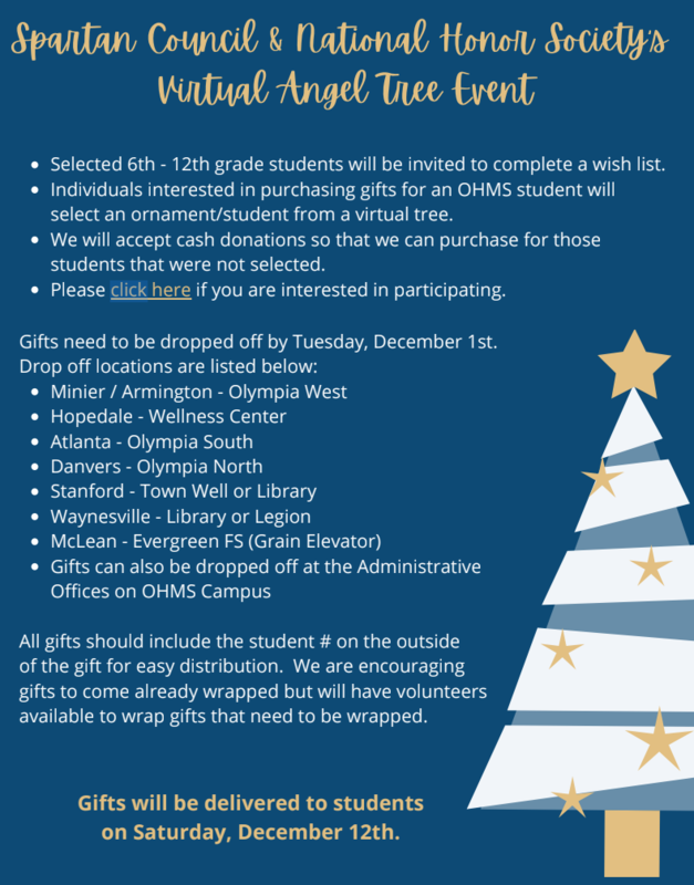 Support your Olympia community this holiday season by participating in the Virtual Angel Tree Event sponsored by the Spartan Council and OHS National Honor Society!